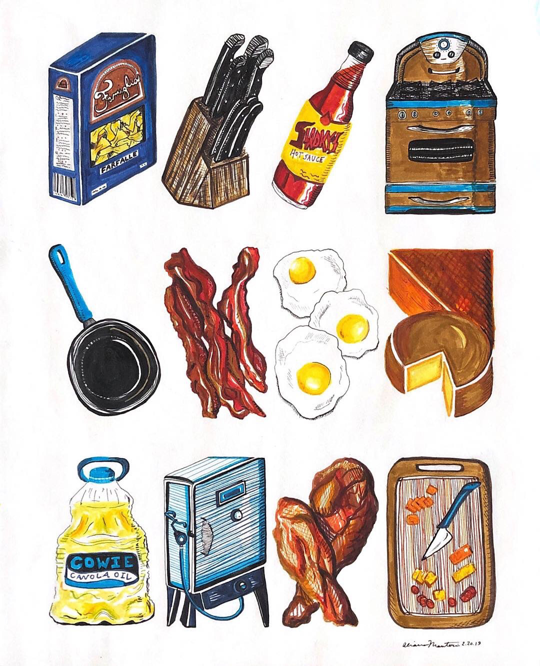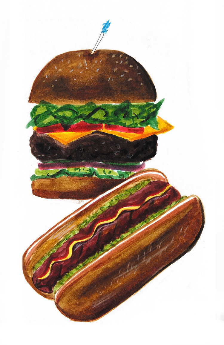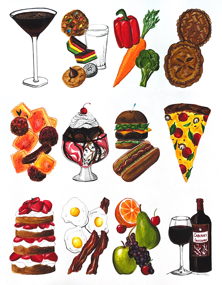 Food series! All foods drawn in watercolor markers and pen.